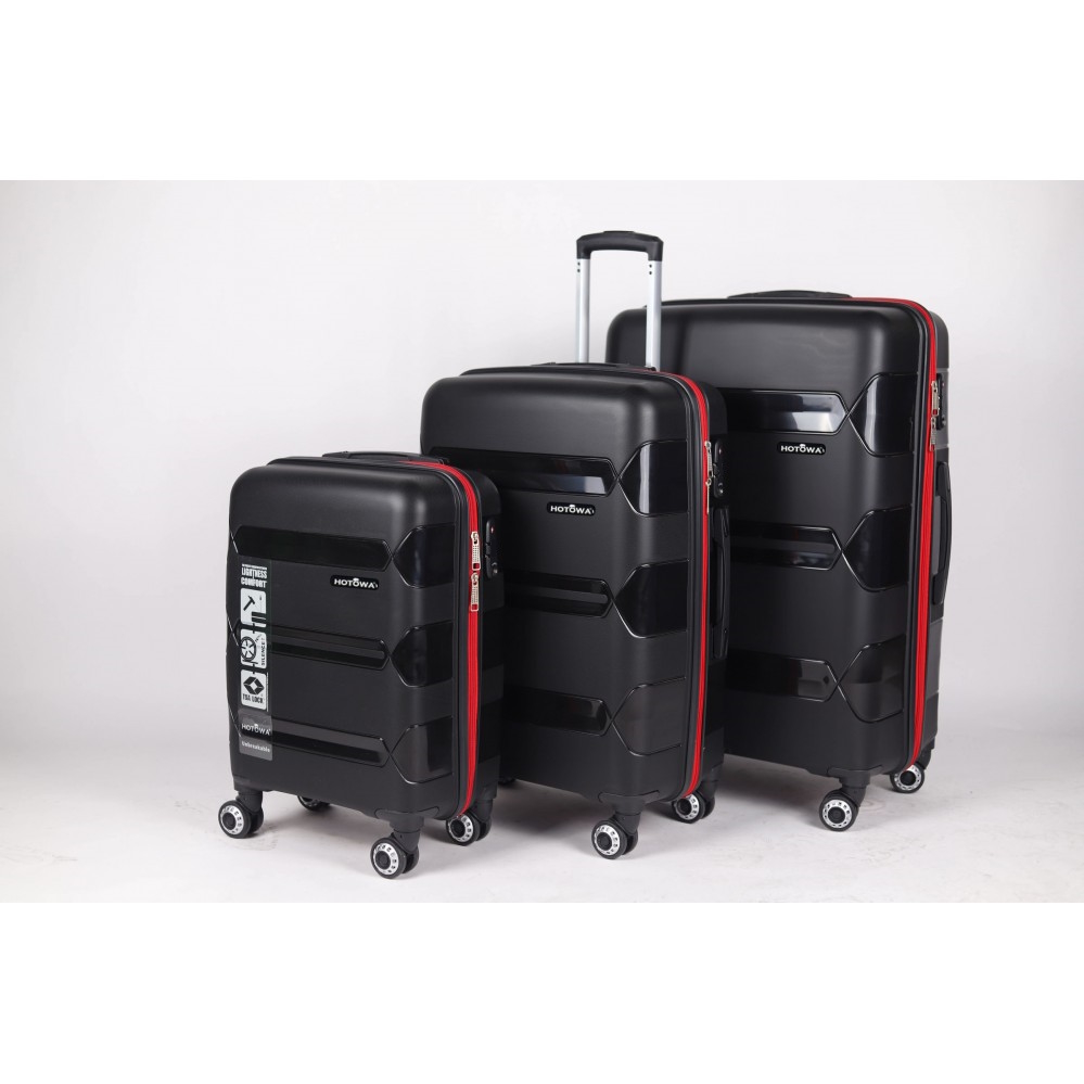 Hotowa Gold PP Valiz 8011 Siyah Kırmızı TSA Kilitli Üçlü Valiz Seti